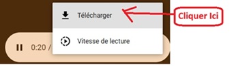 Pour enregistrer un chant, cliquer sur le pupitre de votre choix, écouter et appuyer sur les 3 points pour télécharger (Enregistrer) sur le dossier qui, en général, est, par défaut, « Téléchargement » ou « Download ». Voir ci-dessous