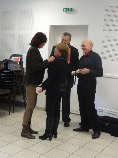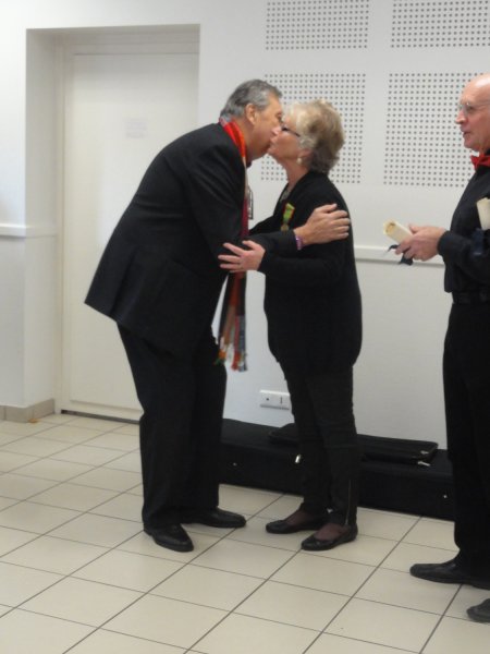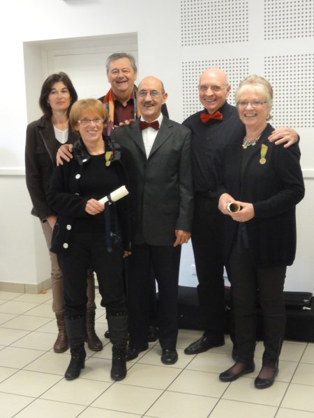 Un pot de l’amitié s’ensuivit avec la remise de médailles et de diplômes à des membres de l’Ensemble Vocal attribués par la Fédération des Sociétés Musicales de la Loire pour les 12 ans d’activité dans une société musicale. Monique Thomas et Marie-Claude Dubesset ont ainsi été décorées en présence de Mme Hélène Fabre, adjointe à la Culture de la Municipalité d’Andrézieux-Bouthéon et de Bernard Albaynac, Directeur Technique de la Fédération des Sociétés Musicales Rhône-Alpes.